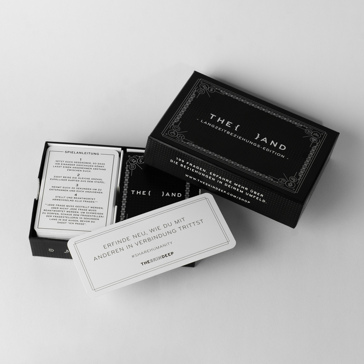 Are you looking for a way to unlock the secrets of your long-term relationship and deepen your connection with your partner or partners while speaking German? Then it's time you experience this incredible deck of 199 unique and thought-provoking questions and prompts designed to help you discover new and exciting aspects of your partner/s. With the Long-Term Couples Edition, you can foster deeper conversations than ever before, creating a stronger and more meaningful connection with your loved one/s, all in German.